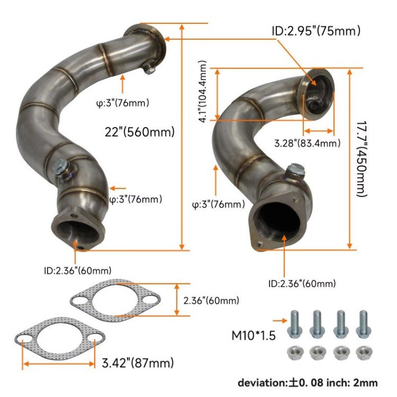BMW Down Pipe E82 135i E90 E92 E93 335i N54 TT BMW down Pipe for the 3.0l TT N54 Engine. 2007-2010 E90/E91/E92/E93 BMW 335i 3.0L Twin Turbo 2011-2012 E92 (Only) BMW 335i 3.0L Twin Turbo 2008-2010 E82 BMW 135i 3.0L Twin Turbo. (WILL NOT WORK ON AWD MODEL). T304SS Construction. Satin Finish.